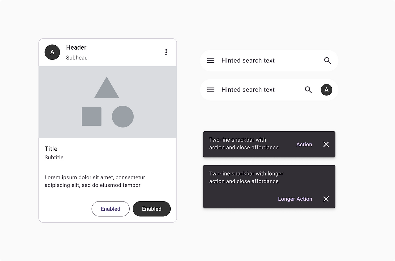 - 카드(이미지+텍스트), 서치바(아이콘+입력 필드) 등이 있다.