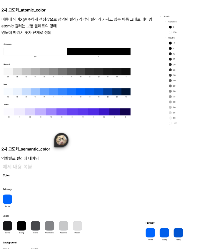 만약에 프라이머리 컬러(주요 컬러)를 바꾼다면 아토믹에서 바꾸고, 그러면 연결되어있는 시맨틱 컬러는 자동으로 바뀌는 식.