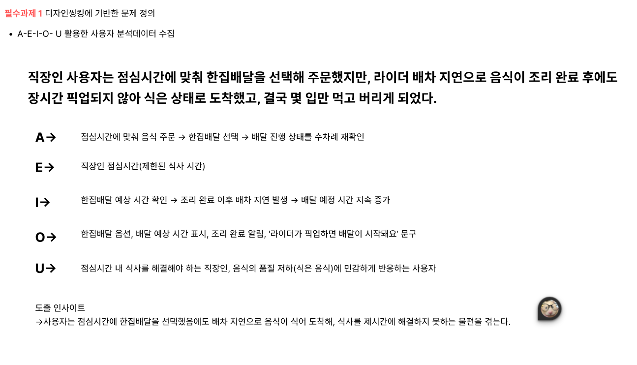 근데 이 리서치 작업이 굉장히 시간이 많이 걸리는 작업이라서 사용자가 배치 시간을 더 잘 알아볼 수 있도록(한집배달이 더 늦을 수 있다는 걸 인지시키게끔?) 과제 방향성을 쉽게 해결할 수 있도록 바꿨다.
