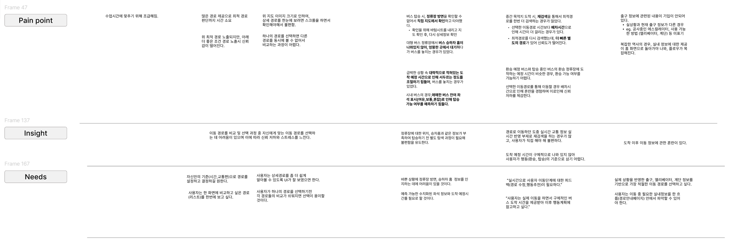 어제 진행했던 유저저니맵에서 인사이트까지 도출했었는데, 이걸 바탕으로 사용자 니즈까지 도출했다!
