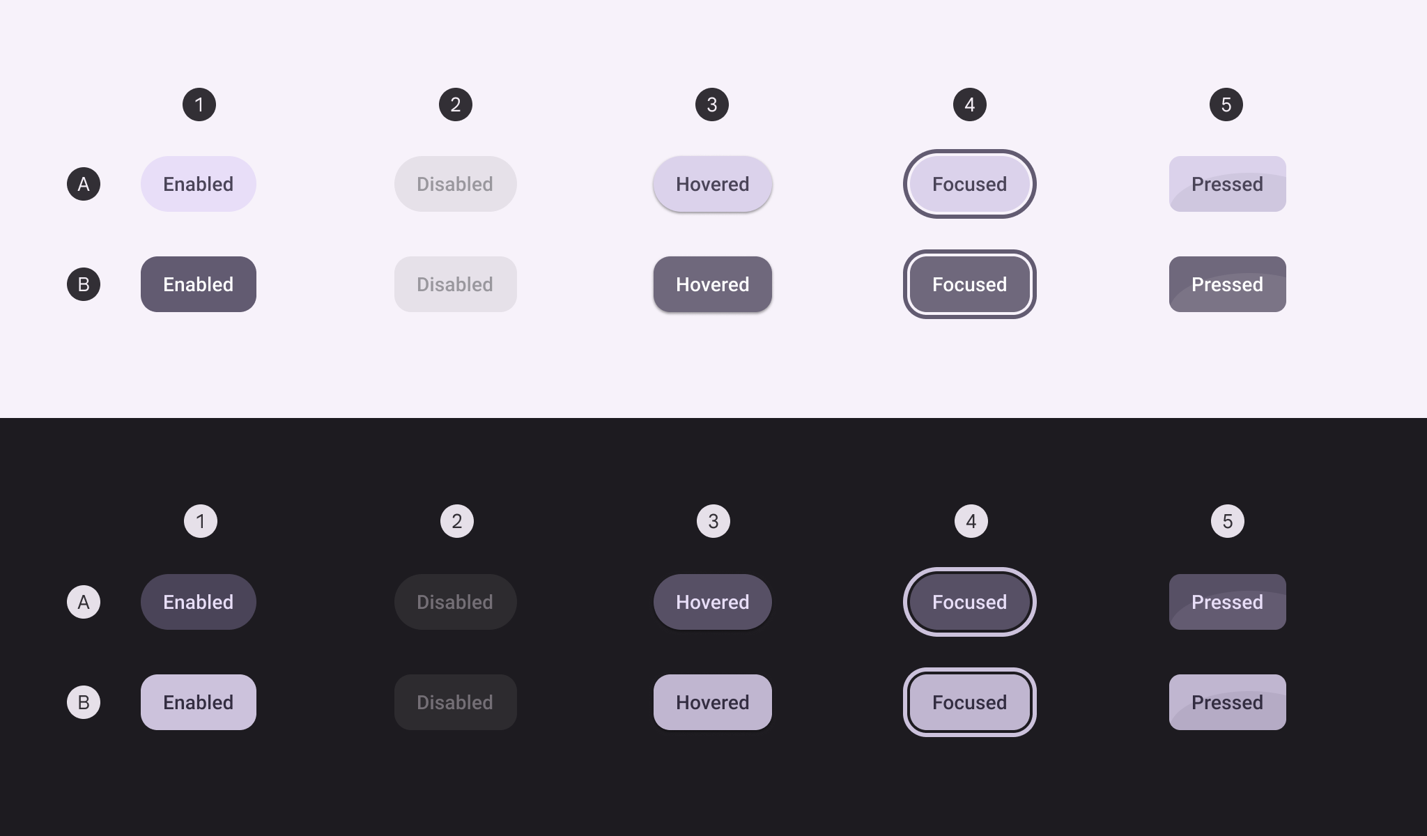 ❸ 호버(hovered) : 사용자가 버튼 위에 마우스나 손가락을 올린 상태