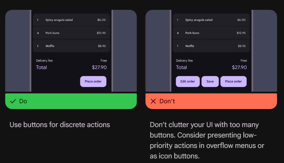 - Actions /액션: 버튼(Button), 플로팅 액션 버튼(FAB)