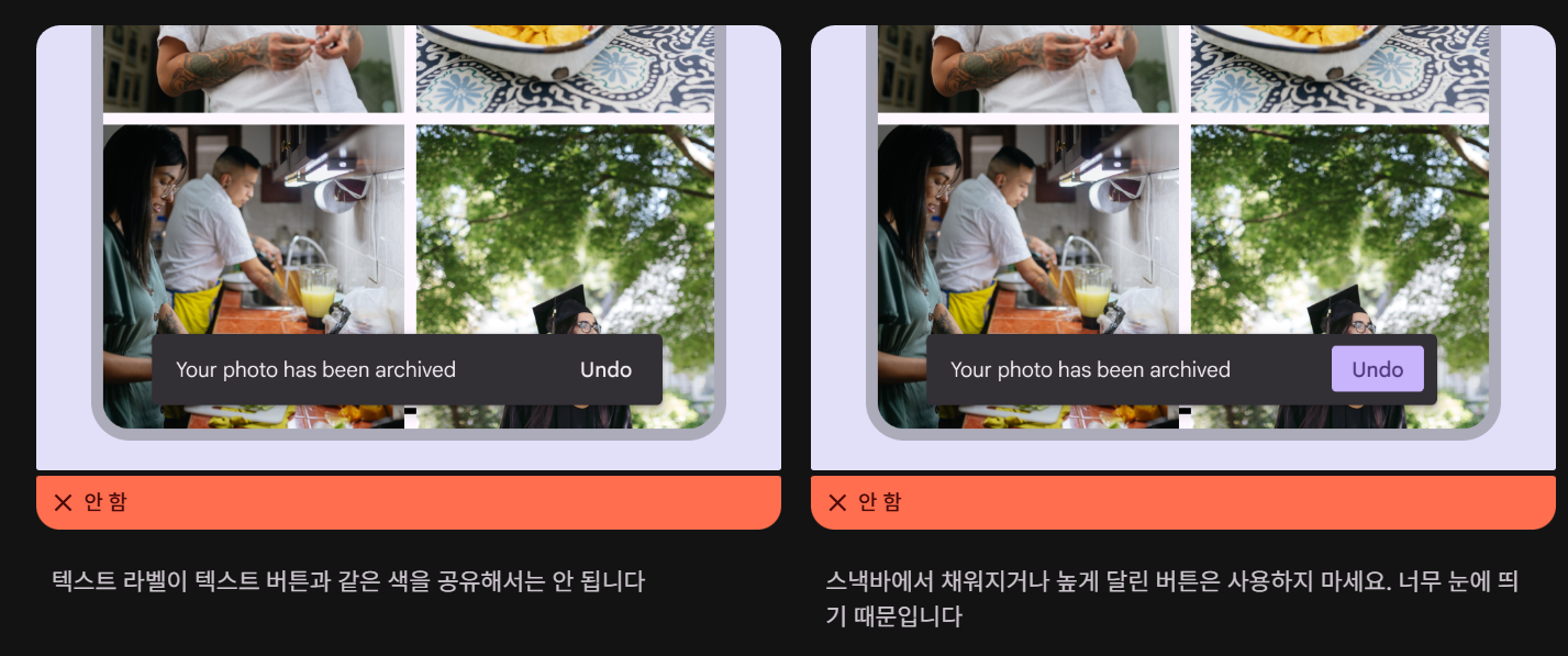 - 스낵바는 사용자 경험을 방해하지 않아야 함