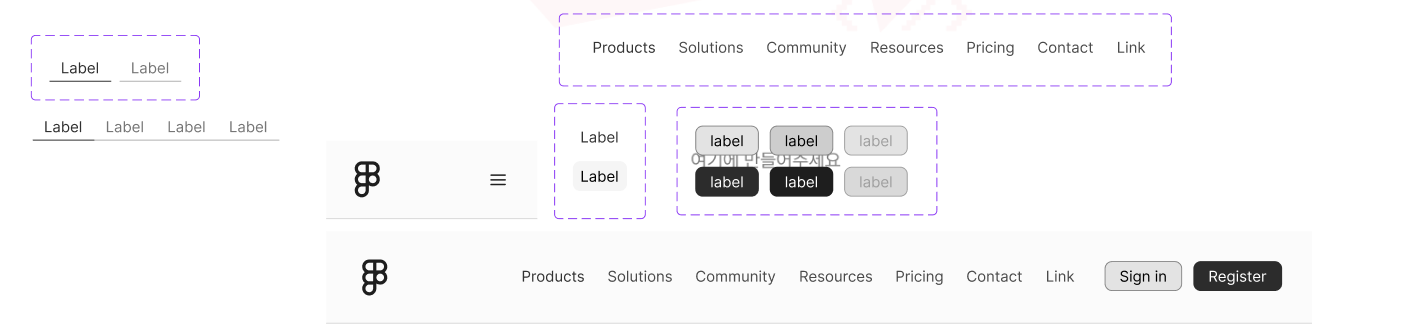 그래서 Nav item을 컴포넌트를 만들고, 인스턴트를 오토 레이아웃으로 묶어서 구현해보기로 결정...
